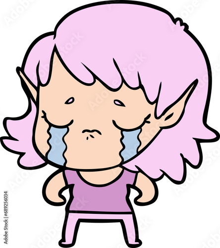 Fototapeta premium cartoon crying elf girl