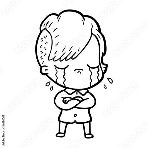 © lineartestpilot, Obraz premium cartoon crying girl with crossed arms