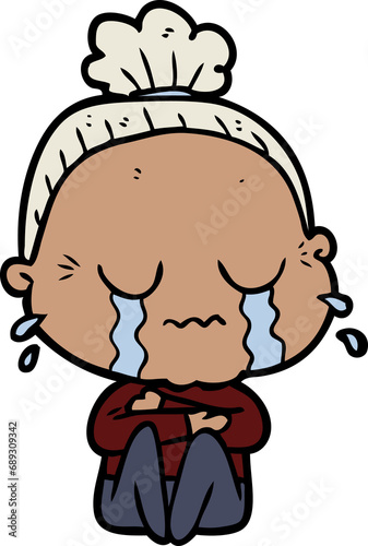 Obraz premium cartoon crying old lady