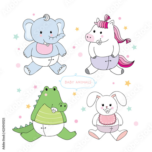 Obraz premium Cartoon cute baby animals vector.