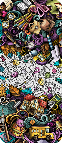 Fototapeta premium Cartoon cute colorful hand drawn doodles School background
