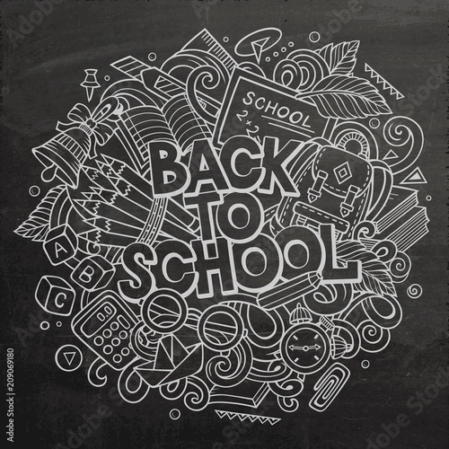 Fototapeta premium Cartoon cute doodles Back to School phrase