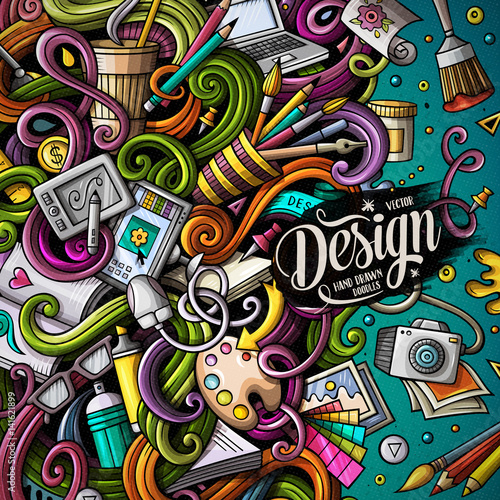 Obraz premium Cartoon cute doodles design frame