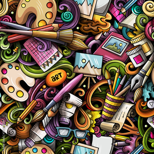 Fototapeta premium Cartoon cute doodles hand drawn Artist seamless pattern