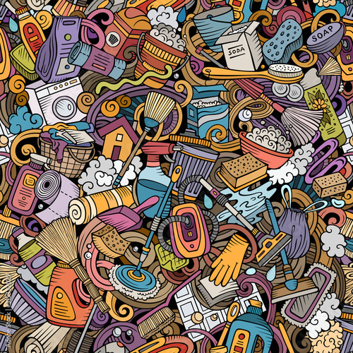 Obraz premium Cartoon cute doodles hand drawn Cleaning seamless pattern