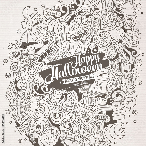 Fototapeta premium Cartoon cute doodles hand drawn Halloween illustration