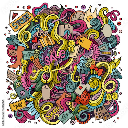 Obraz premium Cartoon cute doodles hand drawn Shopping illustration