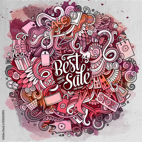 Obraz premium Cartoon cute doodles hand drawn Shopping illustration