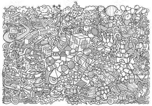 Fototapeta premium Cartoon cute doodles kids toys illustration.
