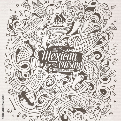 Fototapeta premium Cartoon cute doodles Mexican food illustration