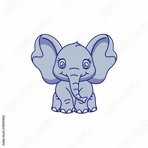 Fototapeta premium Cartoon cute elephant sitting. Elephant mascot cartoon character