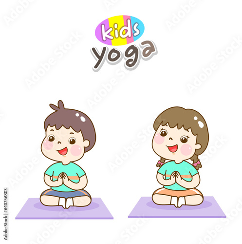 © V.A Gallery, Obraz premium Cartoon cute kids yoga character.
