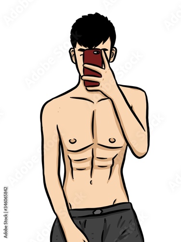 © mansum008, Fototapeta premium Cartoon cute man on white background