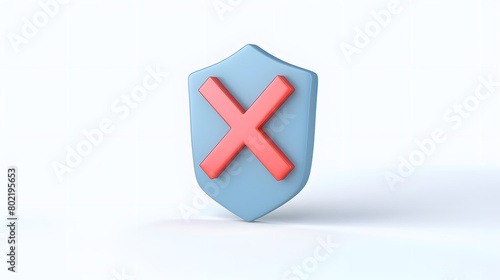 Obraz premium cartoon 3d Icon safety shield x mark perspective . Blue symbol security safety icon. Red X mark in minimalistic style. 3d vector illustration. white background