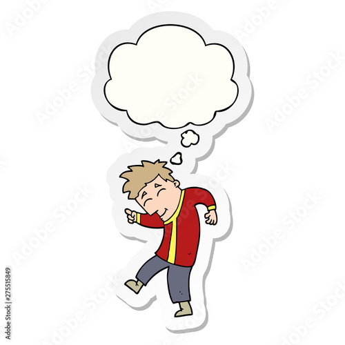 Fototapeta premium cartoon dancing man and thought bubble as a printed sticker