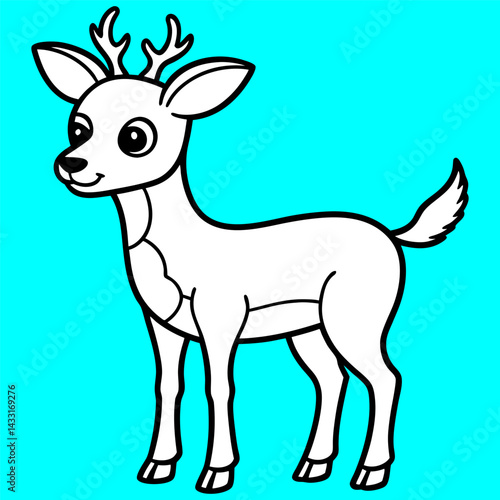 Fototapeta premium Cartoon Deer with Antlers – Cute Vector Forest Animal Illustration on Blue...