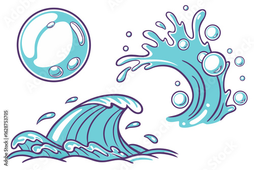 Fototapeta premium cartoon depiction of waves, splash, and bubble vector illustration of an...