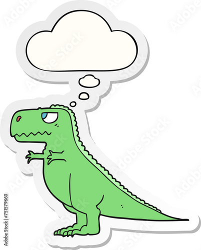Fototapeta premium cartoon dinosaur and thought bubble as a printed sticker