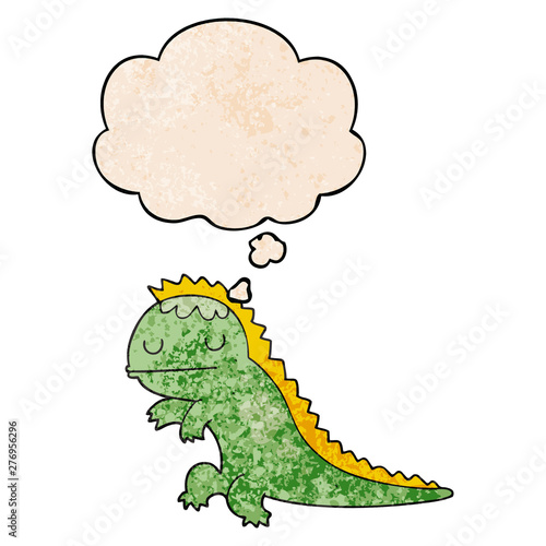 Fototapeta premium cartoon dinosaur and thought bubble in grunge texture pattern style