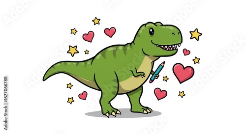 Fototapeta premium Cartoon dinosaur illustration with hearts and stars isolated on white background