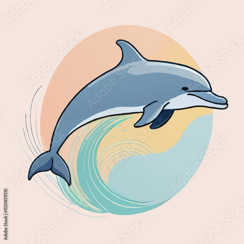 Obraz premium cartoon doldhin with abstract wave pattern vector illustration