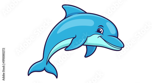 Fototapeta premium Cartoon Dolphin Illustration with Blue Color.