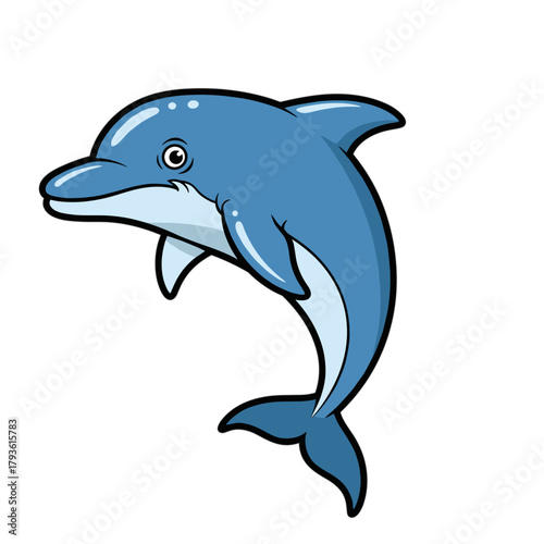 Fototapeta premium Cartoon dolphin jumping in blue color on a white background
