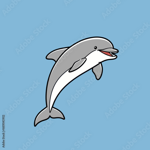 Obraz premium Cartoon Dolphin Leaping, Gray and White with Open Mouth, Outlined in Black.
