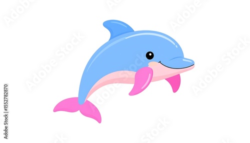 Fototapeta premium Cartoon dolphin smiling on white background.
