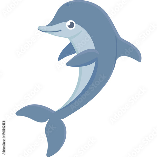 © kirana, Fototapeta premium Cartoon Dolphin Swimming Gracefully With A Gentle Smile On A Transparent Background