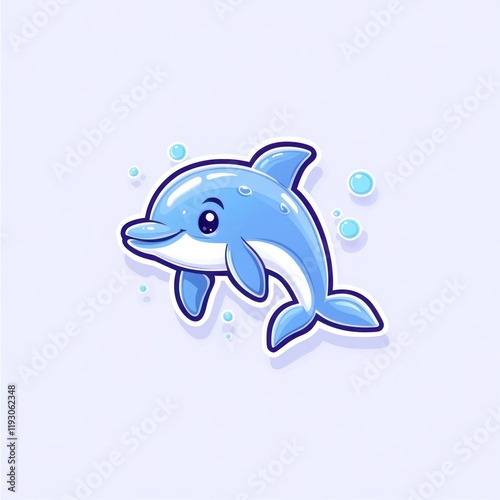 Fototapeta premium Cartoon dolphin swimming, ocean background, kids illustration