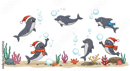 Obraz premium Cartoon dolphins holiday underwater scene