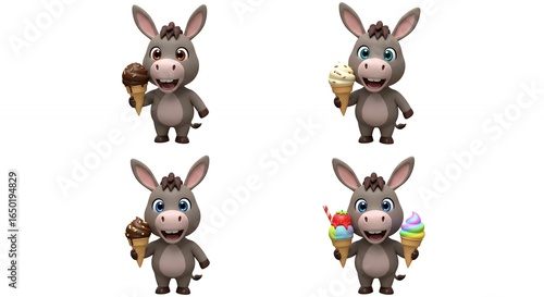 Naklejka premium Cartoon donkeys with ice cream