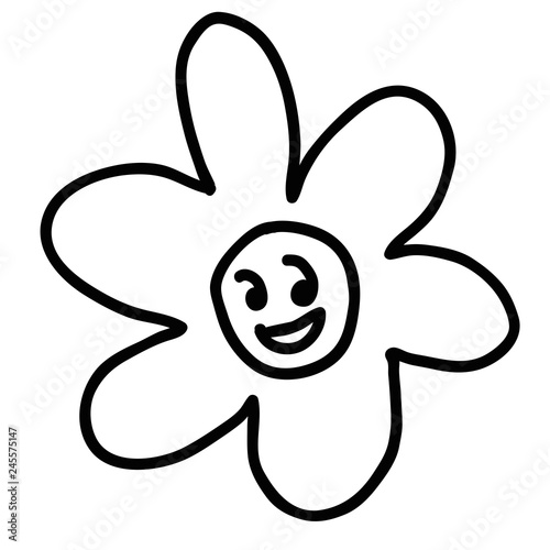 © _aine_, Obraz premium Cartoon doodle happy flower isolated on white background. Vector illustration.