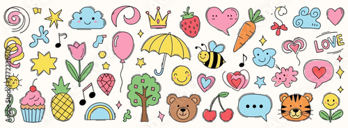 © Studio Png, Obraz premium Cartoon Doodle Icon Collage