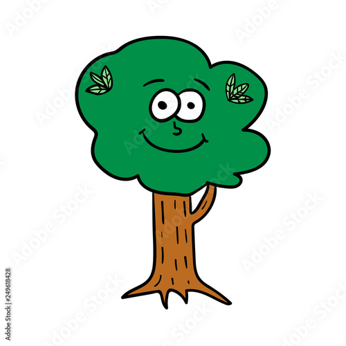 © _aine_, Fototapeta premium Cartoon doodle linear happy tree isolated on white background. Vector illustration.