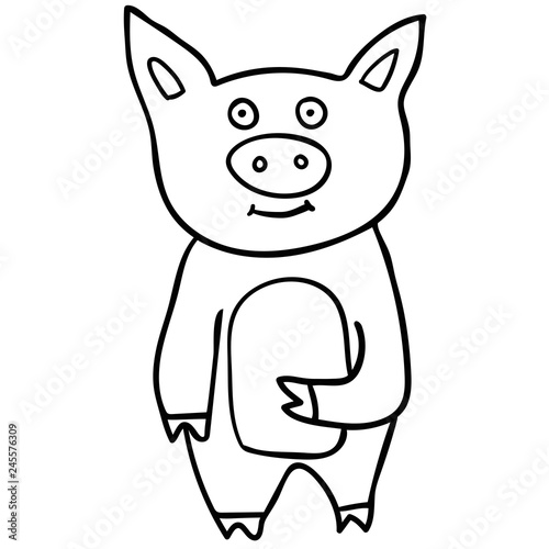 Naklejka premium Cartoon doodle linear pig isolated on white background. Vector illustration.