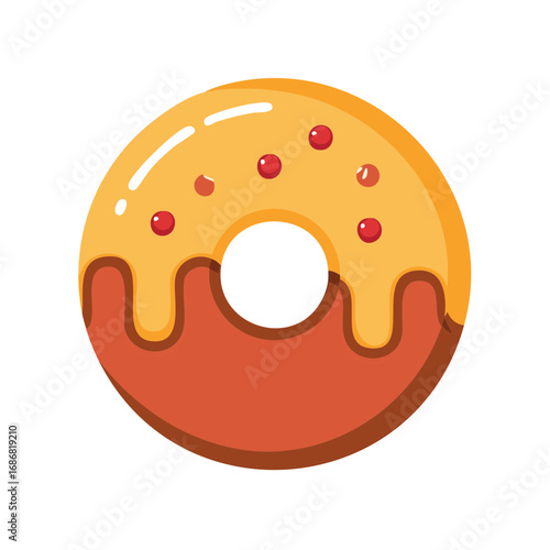 Obraz premium Cartoon Doughnut with Yellow Icing and Red Sprinkles, Tasty Treat