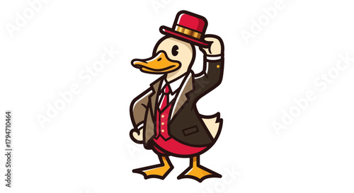 © Yoamn, Naklejka premium Cartoon duck wearing suit and hat isolated on white background
