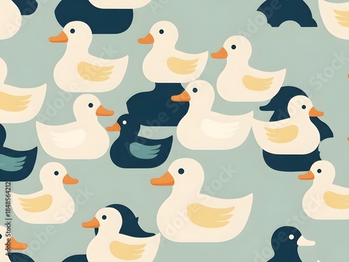 © Dewi, Fototapeta premium Cartoon ducks and penguins repeating pattern decorative design for background