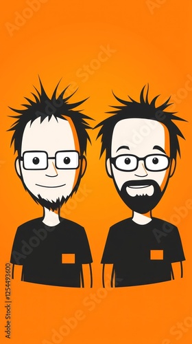 © AUREL COLL, Naklejka premium Cartoon duo, orange background, smiling, teamwork. For website, app, or social media