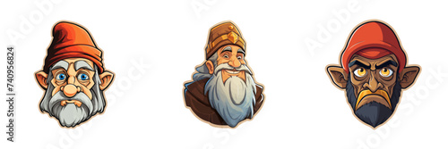 © Татьяна Петрова, Fototapeta premium Cartoon Dwarf Face Sticker. Vector Illustration
