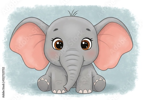 © RightPurpose, Obraz premium Cartoon Elephant Sitting with Big Eyes and Ears Illustration