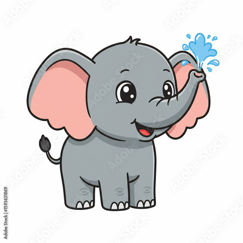 Naklejka premium Cartoon elephant spraying water from its trunk with a happy expression on a...