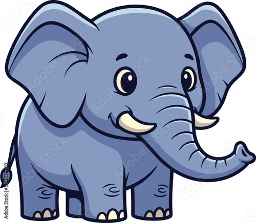 © Arti, Fototapeta premium Cartoon elephant stands with curved trunk. Animal illustration, wildlife, cute, playful.