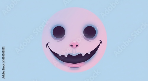 Fototapeta premium Cartoon Face with Large Eyes and Grinning Expression on Light Blue
