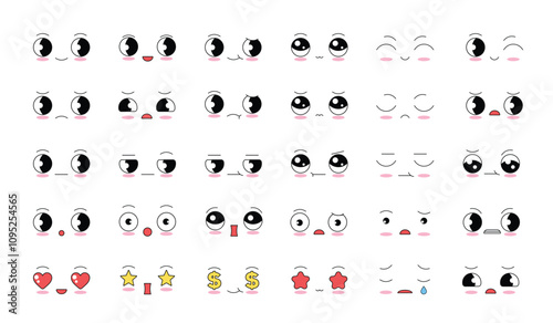 Naklejka premium Cartoon faces. Expressive eyes and mouth, smiling, crying and surprised...