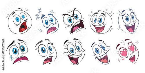 Fototapeta premium Cartoon Faces with Various Expressions, Generative Ai