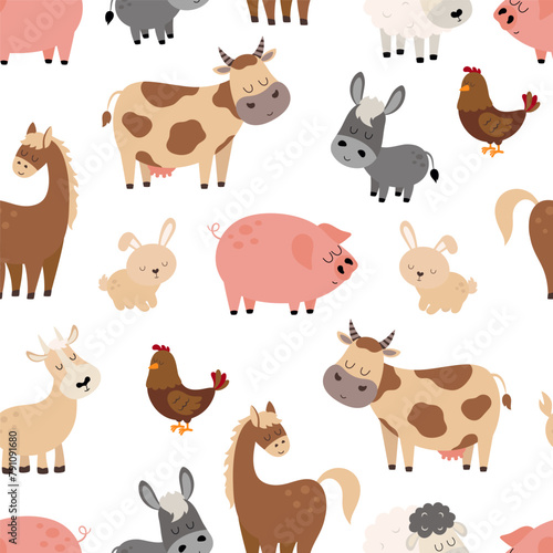 © StockVector, Obraz premium cartoon farm animal seamless pattern