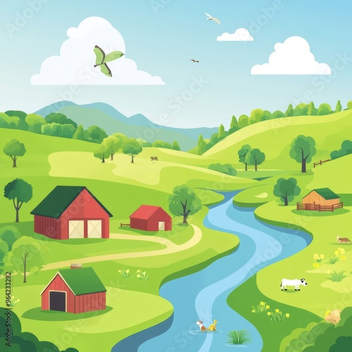 Fototapeta premium Cartoon Farm Illustration: Simple, Flat Design for Business Backgrounds